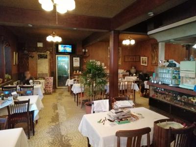 住宅街の中にひっそりとたたずむレストラン。名前からして和食の店かなと想像しますが、いやいやレトロな洋食屋なのです。照明や柱などの内装や壁に掛けられた絵画などから当時はハイカラな店であったであろうことが想像できます。