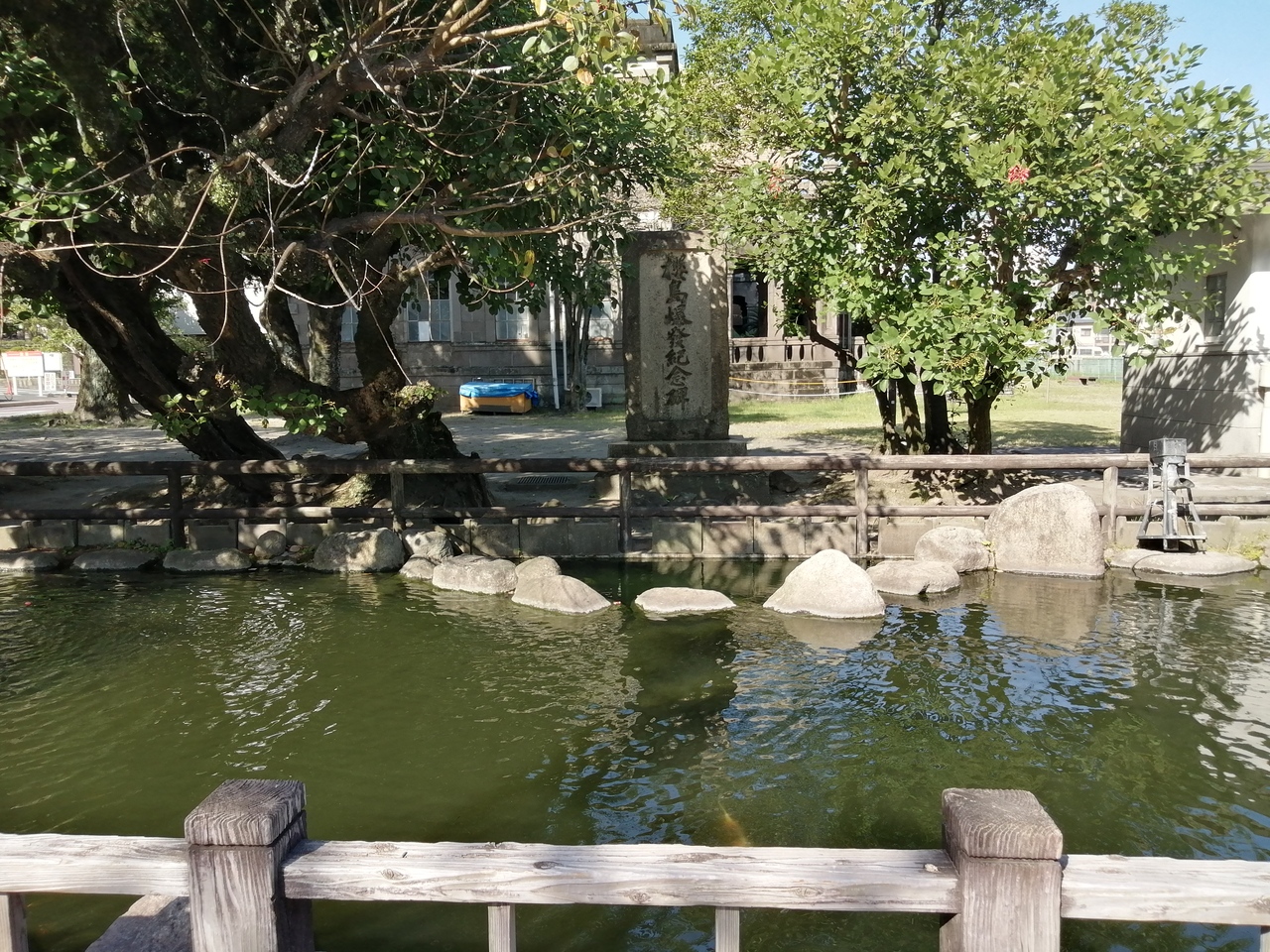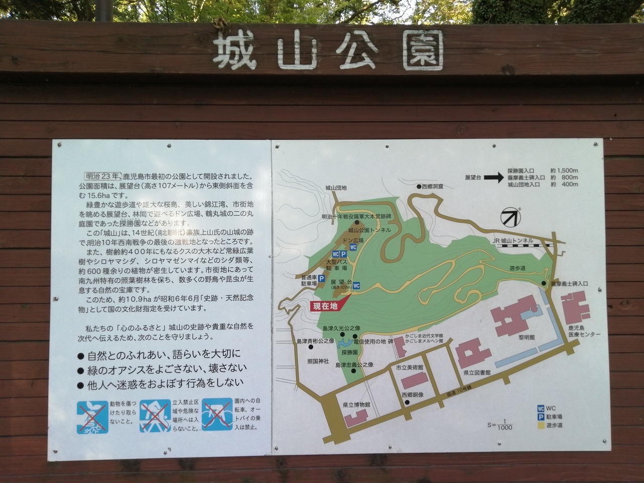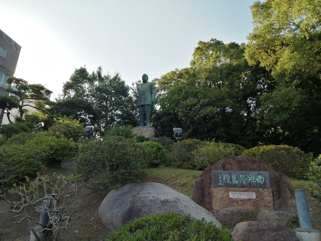 城山公園にあるドン広場の奥の林を抜けた先にひっそりと立っています。西南戦争時に薩摩軍が本営を置いた場所です。石碑が一基あるのみで、説明板も何もありません。寂しいところです。これでは観光スポットとはなりえません。よほどの歴史好きでないと訪れても楽しめないと思います。