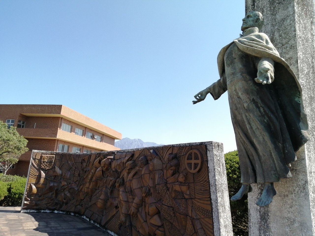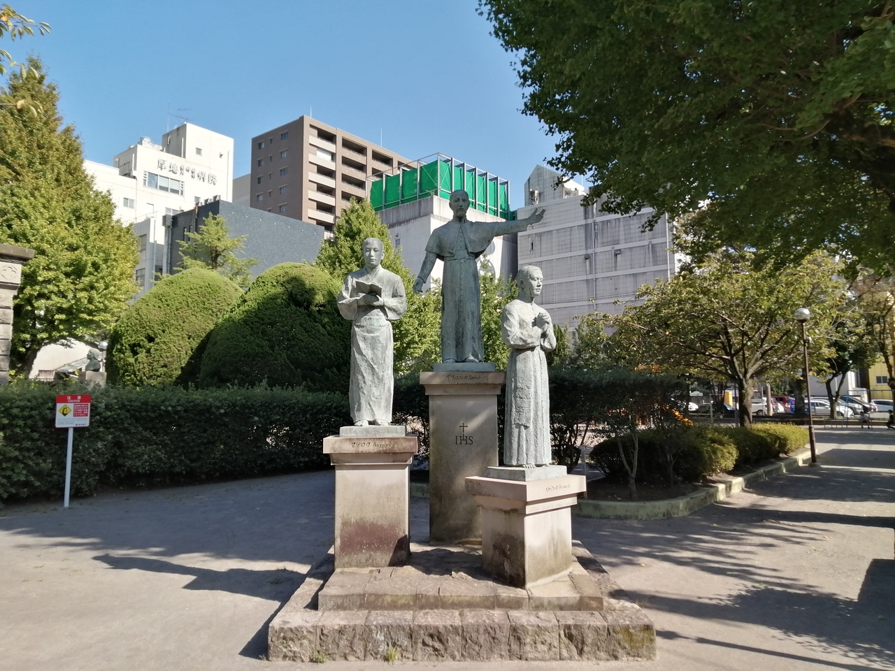 キリスト教の布教のため来日し、最初に鹿児島を訪れたフランシスコ・ザビエルの来航400年を記念して1949年に作られた公園です。元々、この地には教会が建てられていましたが太平洋戦争中に空襲で焼失。その時の教会の廃材を使用して作られた記念碑やザビエルなどの等身大の像があります。