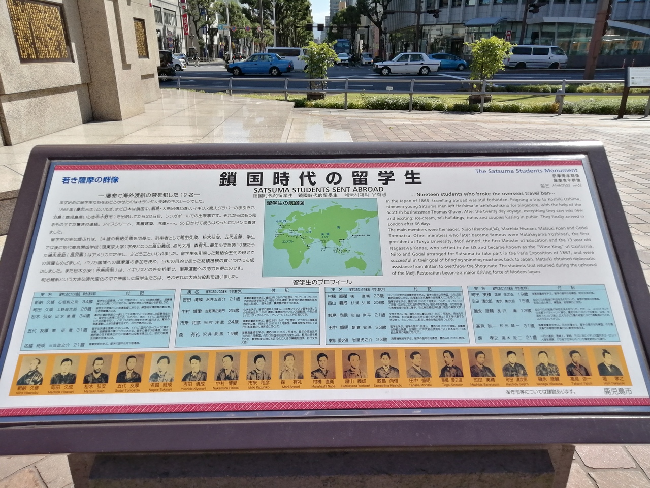 時標(ときしるべ)と名付けられた市内7ヶ所にある薩摩に所縁のある偉人たちの像の1つです。それぞれ、とあるシーンを再現したものでリアルな姿がなかなか見ものです。