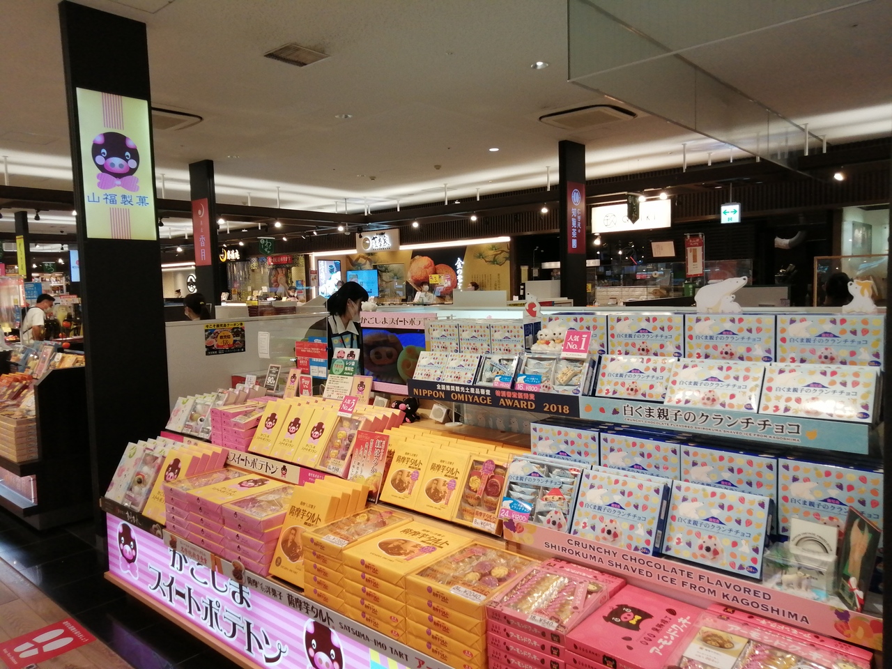 鹿児島中央駅2階の改札横にあるグルメ、土産物屋エリアです。「みやげ横丁」で買い物しましたが、“かゆい所に手が届く”とはまさにこのこと。昔ながらの銘菓や流行りのスイーツ、さつま揚げなどの名産品、さつま焼酎に駅弁まで。鹿児島土産がずらりと揃っており、はっきり言ってお土産の買い物はこの場ですべて済みます。ただ、揃いすぎていて迷ってしまうので大変ですが…。