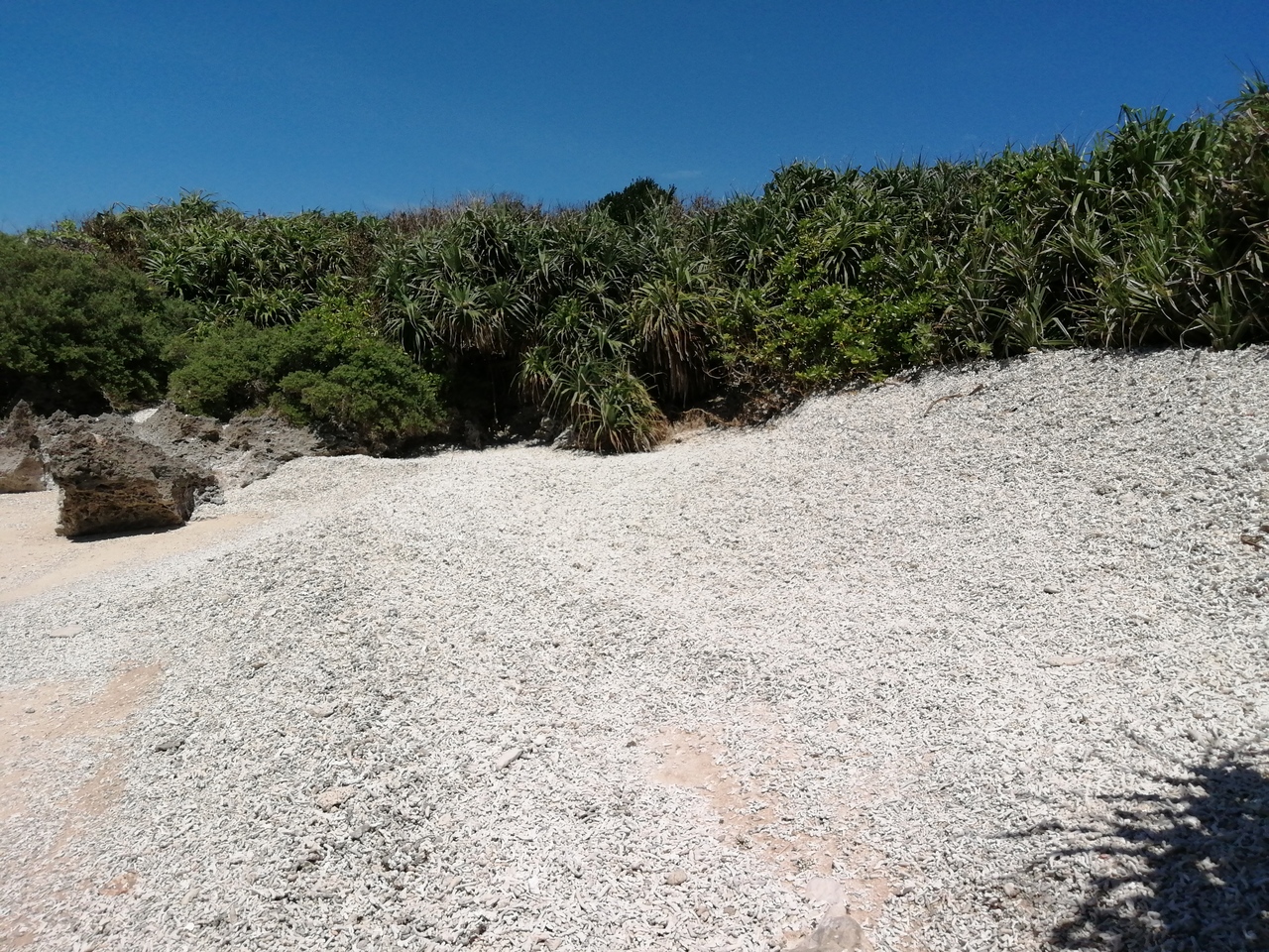 プライベート感満載の小さなビーチです。水際は砂浜でしたが、その上側には枝サンゴの欠片が山盛りに溜まっています。まさにサンゴの浜。なかなかの光景です。おすすめの穴場的なスポットです。- 旅行時期