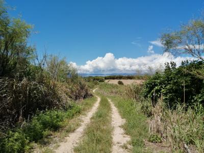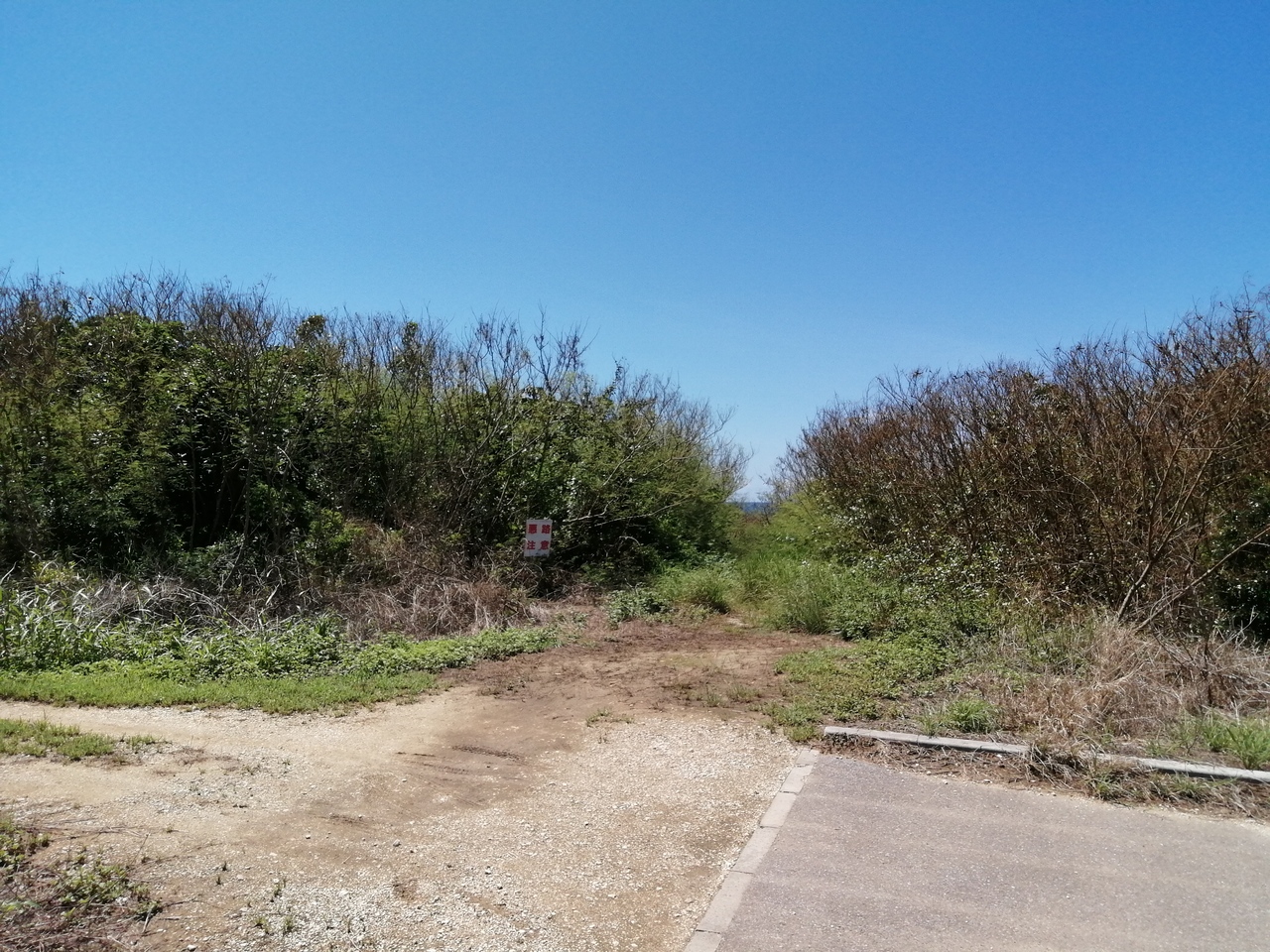 浜シタン群落の350mほど南にあります。農道で最寄り地点である入口まで行けます。ちゃんと看板が出ています。そこから草むらの小道を100mほど進むと到着。