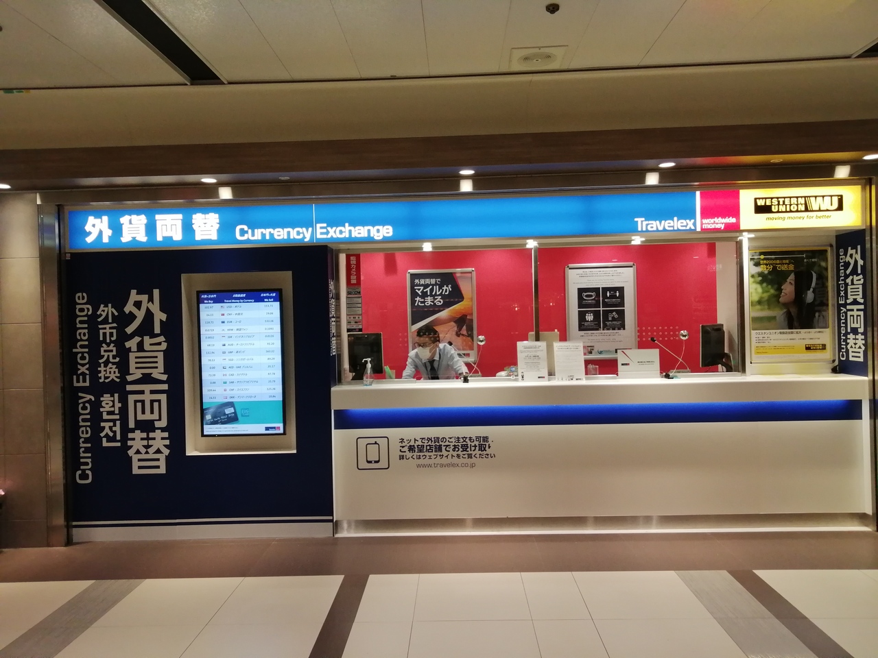 ユニモール内にある外貨両替所「トラベレックス」で両替しました。場所はU7出入口近く。