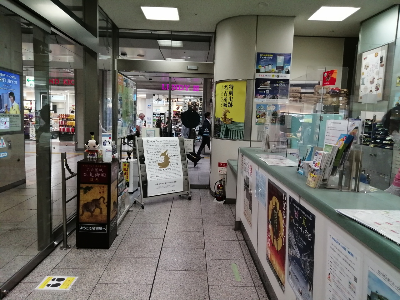 場所はJR名古屋駅桜通口(東口)、待合わせスポットになっている「金の時計」から約30mほどの中央コンコース上にあります。もちろんスタッフが常駐しており、各種パンフも揃っています。サービスタイムは8:30~19:00。年末年始を除く毎日開いています。
