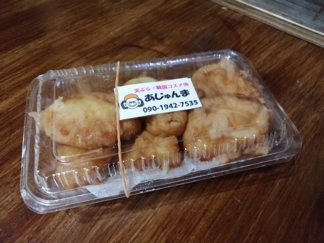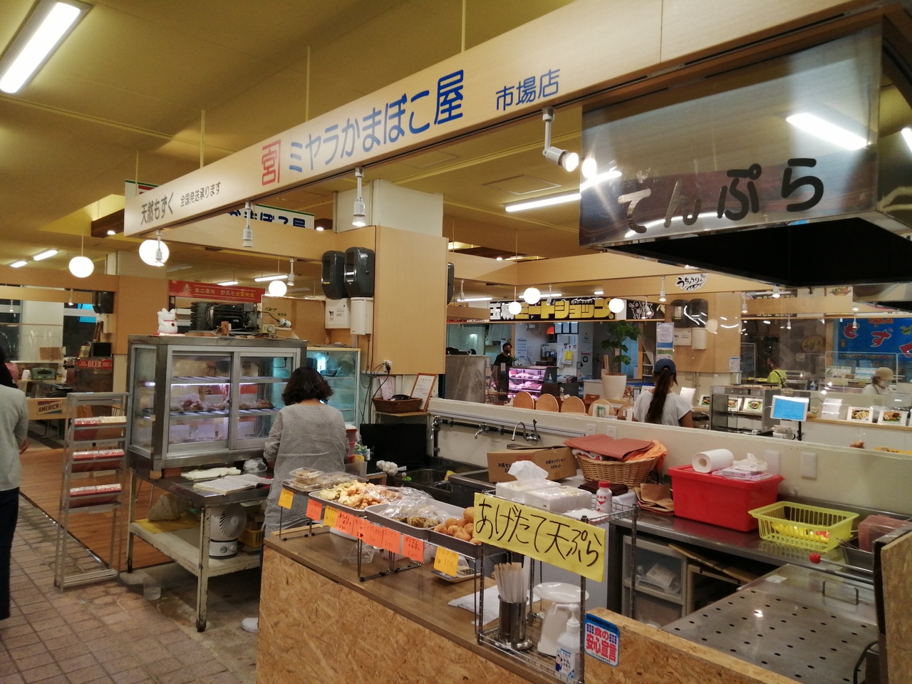 石垣市公設市場の中に入っています。“カウンター”にはてんぷら各種(アーサー、島ラッキョ、もずくなど)が並べられており、購入後、市場内に設けられたテーブル席ですぐに食べることができます。私は冷蔵ケースに入っている「かまぼこミックス」を購入。島ラッキョ、たらし、もずくの3種入りでお値段税込510円。なんか微妙に高いような気がするんですが…。公設市場と言っても半ば観光客用になっているので、そう感じてしまうのかもしれません。気のせいならいいんですが…。