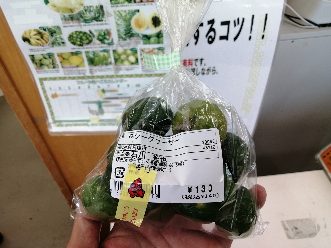 やはり旅していると栄養不足が気になります。とくにビタミン。手っ取り早くビタミン補給するためにシークヮサーを買いました。小玉が10個入って税込140円。いーね。得体のしれない輸入物ではなく、生産者の名前が入った正真正銘の国産物です。安心安全って素晴らしいですね。- 旅行時期