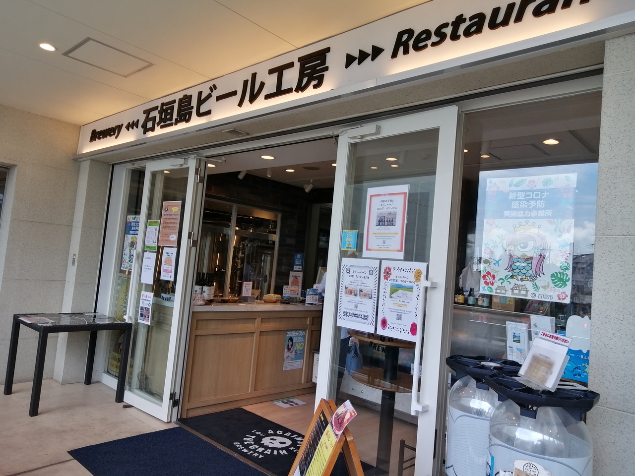 石垣島の一等地、730交差点に建つ“最先端”の複合商業ビルです。石垣島まで来てこんな所はまったく興味ありませんが、交差点から目立つ、ミョ~にそそられる一画が…。それは2階中央に見える「石垣島ビール工房」。なんとこんなビルの中でビールを作っているんです。ちゃんとガラス越しですが“工場見学”もできます。ステーキやソーセージを出すレストラン併設でこのクラフトビールをいただける…はずなんですが、緊急事態宣言中につき、ビールの提供は停止中。かわいちょ。ビールのないステーキなんて…こんなんじゃ客は入らないでしょう。心中お察し致します。