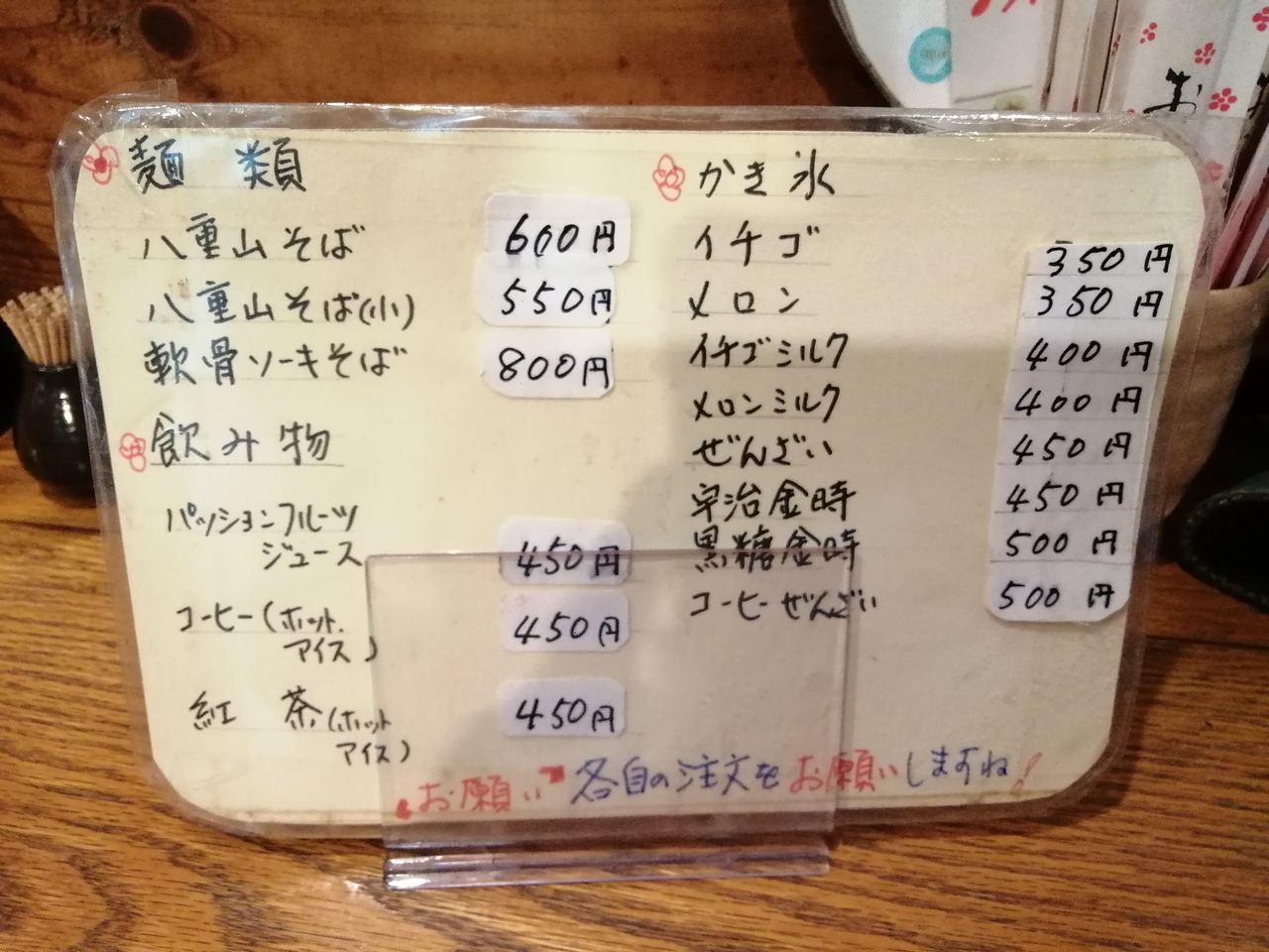 「八重山そば(500円)」と「ピパーズジューシー(150円)」をオーダー。