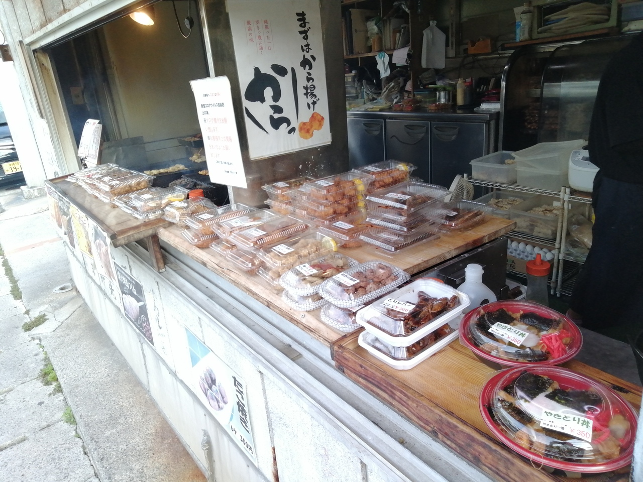 他にも鶏のあらあげやコロッケ、たこ焼き、餃子などもあります。私が買ったのは「やきとり丼」。おそらく2本分くらいの「もも」を玉ねぎと炒めてあり、オンザライスしたものです。温泉卵も乗っかり350円。もちろんおいしく、なかなかお得な一品だと思います。やきとり丼は17:00頃から出ます。- 旅行時期