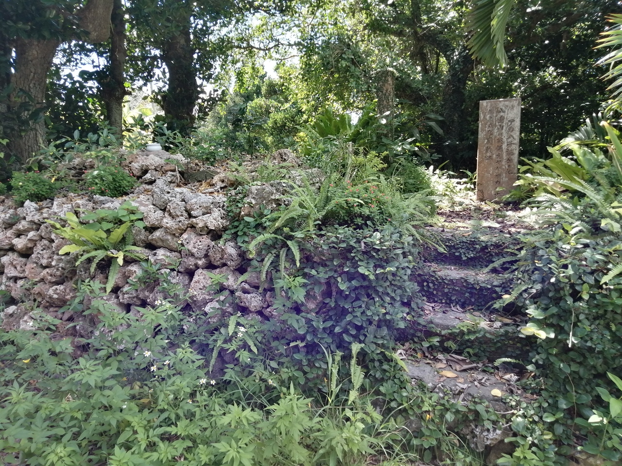 林(藪)の中の碑には“琉球政府文化財”などと書かれていますが「下田原貝塚」の文字は確認できず…というか藪がひどすぎて文字を読むのも困難な状況でした。