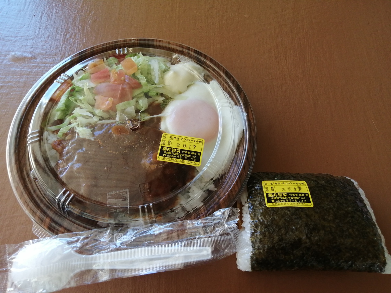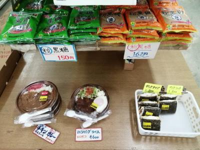 島内にある飲食店が卸している、おにぎりやお弁当があります。持ち込まれるのは10:30~11:00頃。日によって違いますが売り切れる場合がありますので昼前には行った方がいいです。
