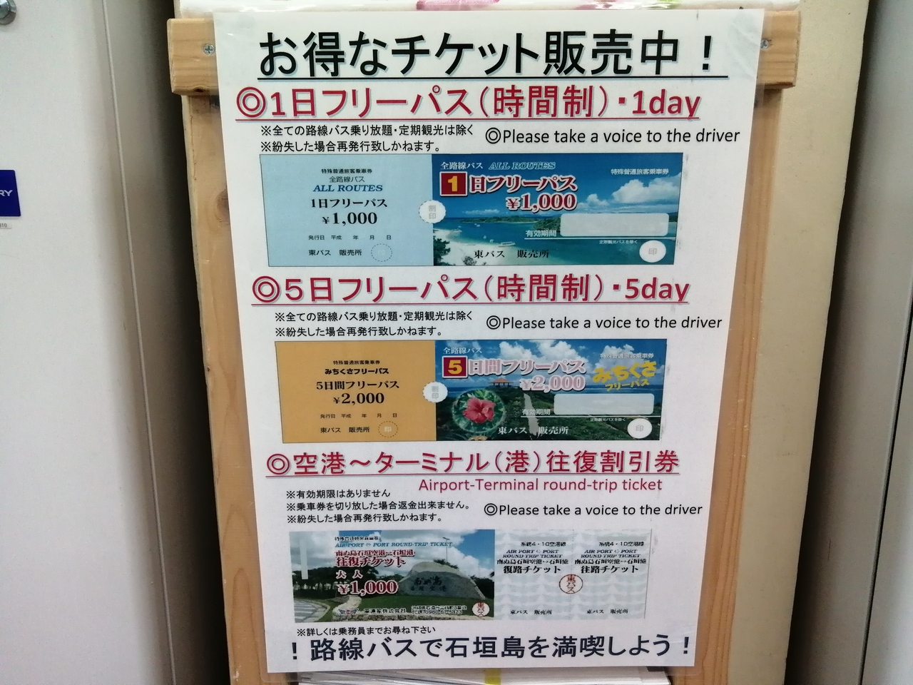 ちなみに川平湾(円)、米原ビーチ(円)、平久保崎(円)を往復するつもりの方は“1日券”を買った方がお得です。