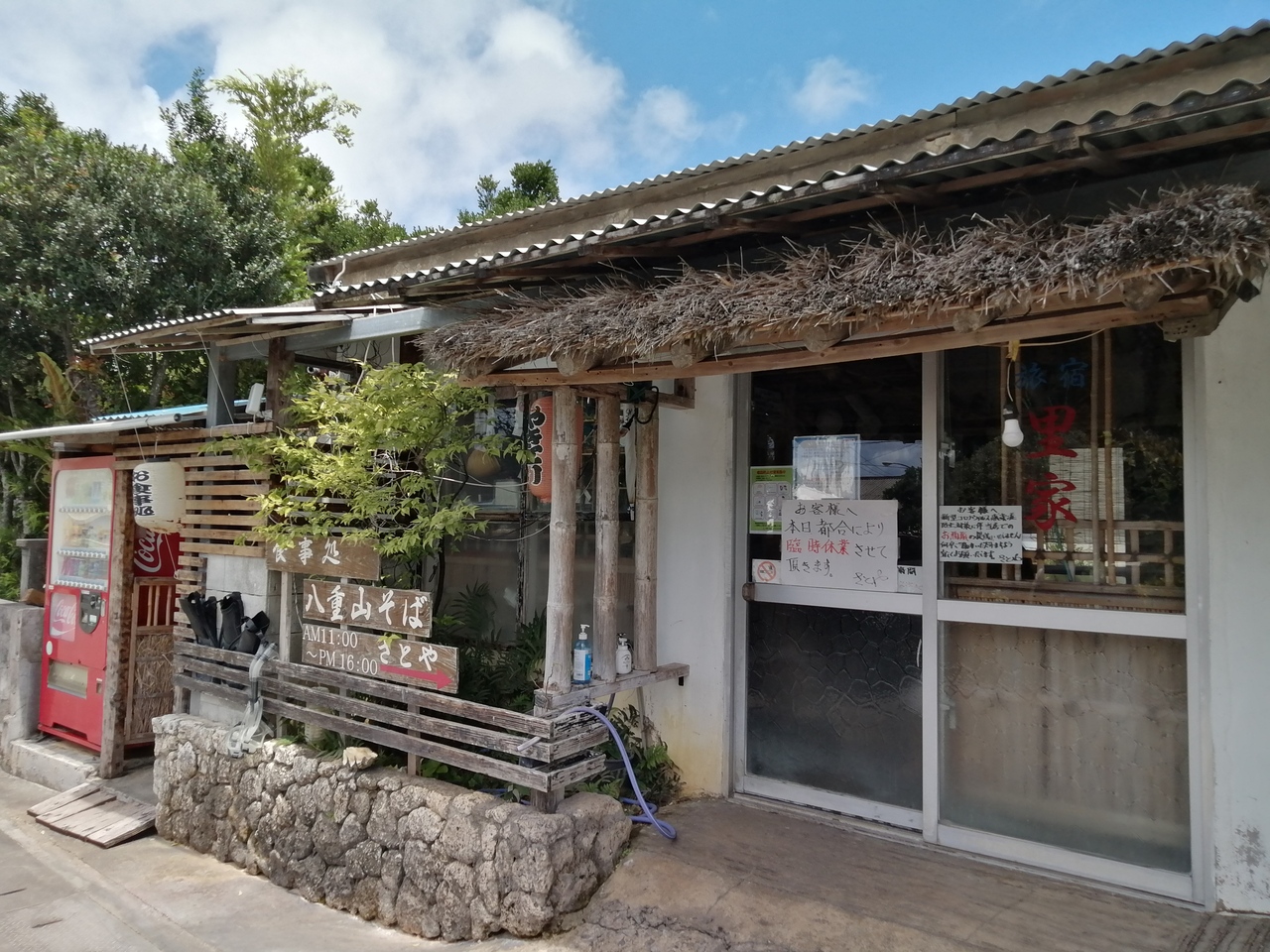 店の前には与那国生活路線バスのバス停があります。バスで「Dr.コトー診療所」にお越しの方はここでお降りが便利です(というか比川にはバス停はここにしかありません)。- 旅行時期