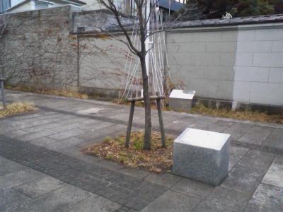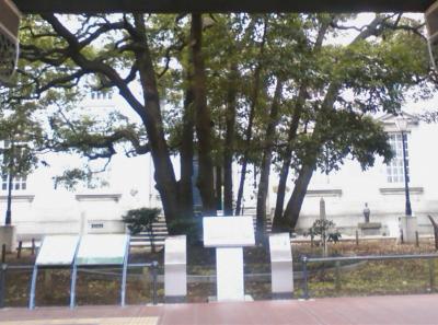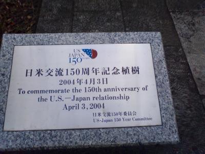 横浜開港資料館隣の開港広場内に、日米交流150周年記念植樹の ハナミズキと解説版がありました。