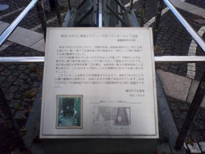 横浜開港資料館隣の開港広場内で展示されている、明治10年代に築造されたレンガ造りのマンホールと下水管です。