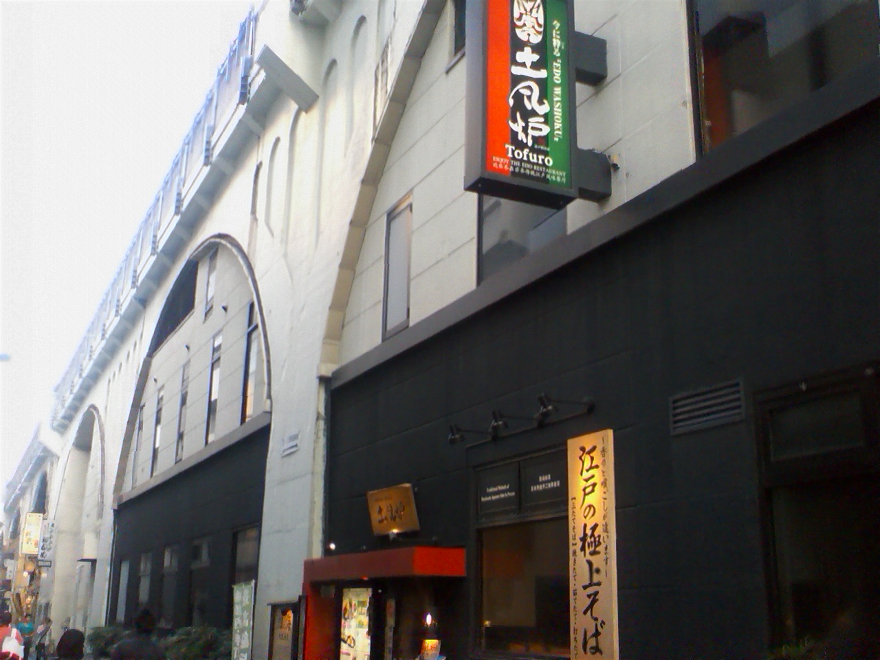 JR神田駅前の横断歩道を渡って、秋葉原方向に新幹線の高架脇を歩いて行くと、新幹線の高架下にある餃子の王将です。