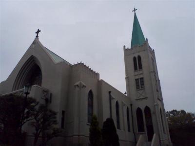 根岸線石川町駅から連続上り坂で徒歩10分程、山手本通り沿いにある、立派な塔がある教会が、山手カトリック教会。