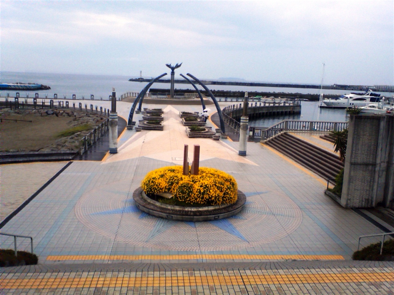 JR熱海駅から徒歩20分程、国道135号線と海の間にある、渚親水公園内にある、相模灘に突き出たテラスです。