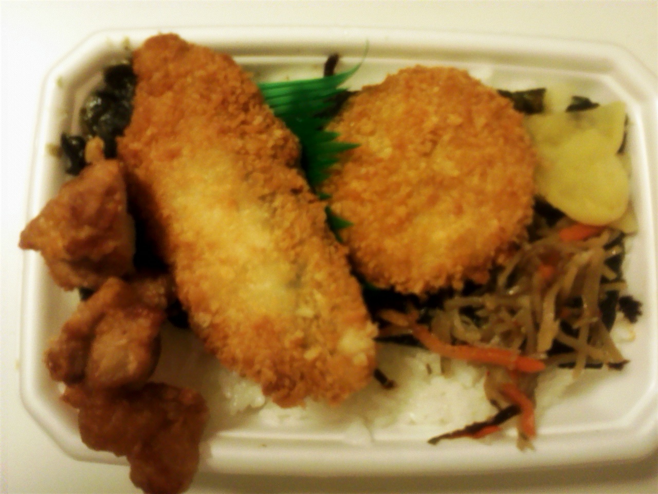 通常の、のり弁当に対し、からあげとメンチカツがさらに付いている弁当でした