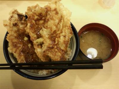 今、フェアーをやっている新作メニューの、ロース豚天丼 味噌汁付きで630円を食べてみた。