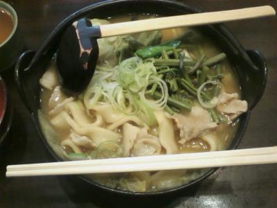 多くのお客さんが、太い麺(うどんの太いもの)と味噌スープのほうとうを頼んでいました
