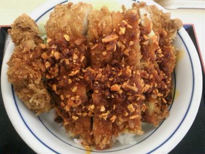 食べたのは、期間限定の、ラー油チキンカツ丼。
