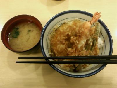 天丼が味噌汁付きで税込500円で、揚げたての天婦羅が食べられます。