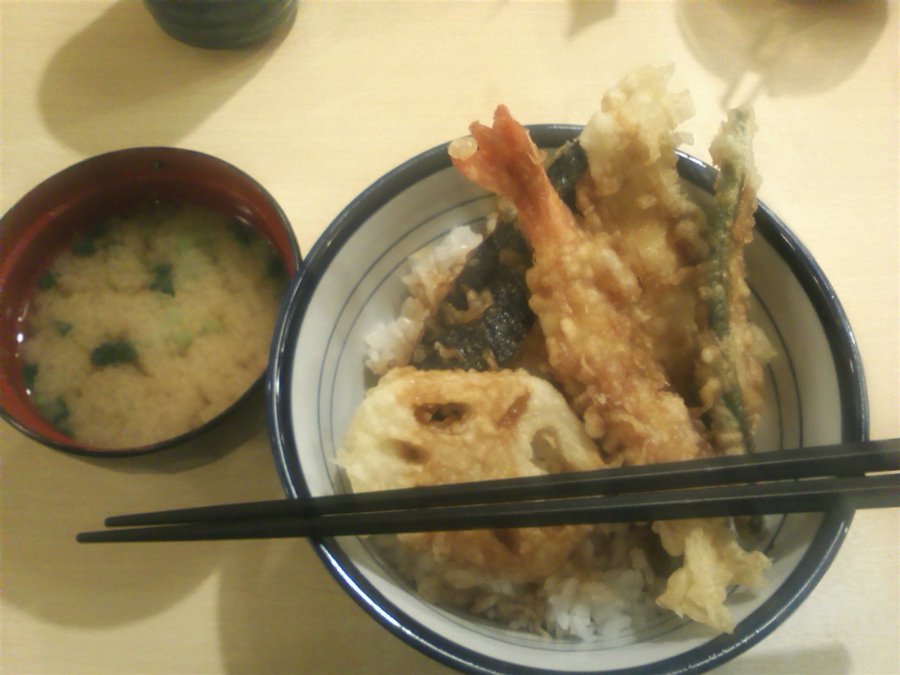 天丼が消費税8%増税後も味噌汁付きで500円で食べれます。