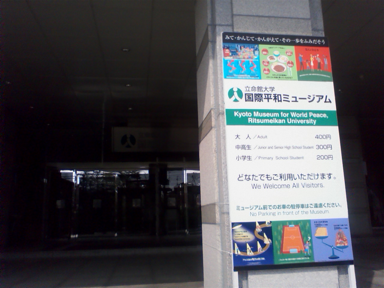 京都駅から路線バスで約30分、立命館大学の脇にある、戦争と平和についての展示を行っている博物館でした。