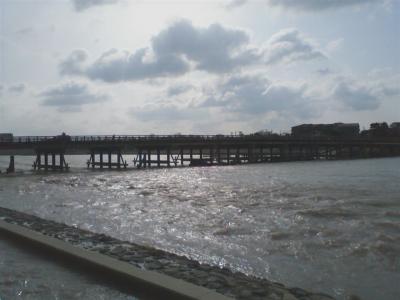京都の嵐山を代表する観光スポット、桂川に架かる橋です。