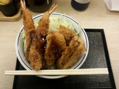 食べたのは、エビ、ヒレ、メンチのソースかつ丼