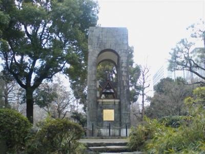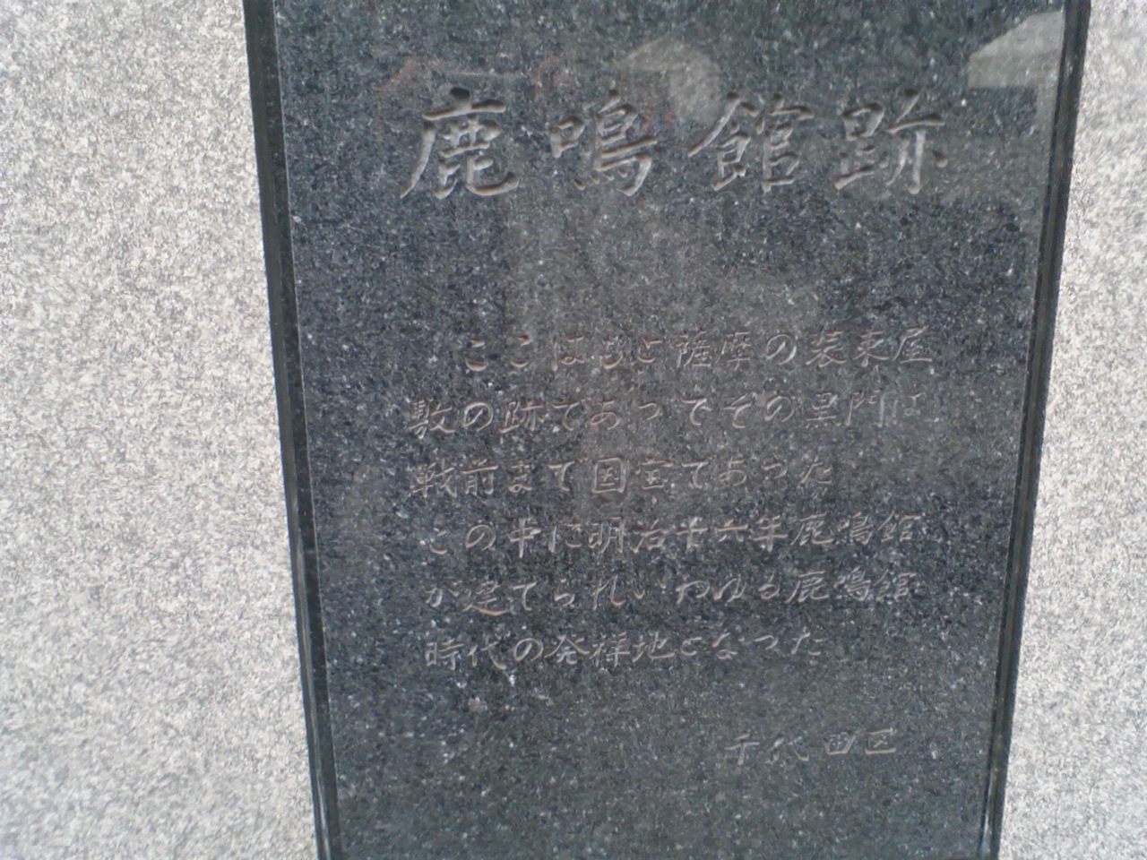 JR山手線有楽町駅から徒歩7分、地下鉄日比谷線、千代田線、三田線の日比谷駅から徒歩数分の帝国ホテルの隣に、碑が立っていました。