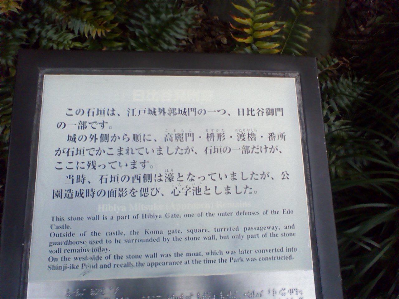 江戸城外郭城門の一つ、日比谷御門の一部との事です。