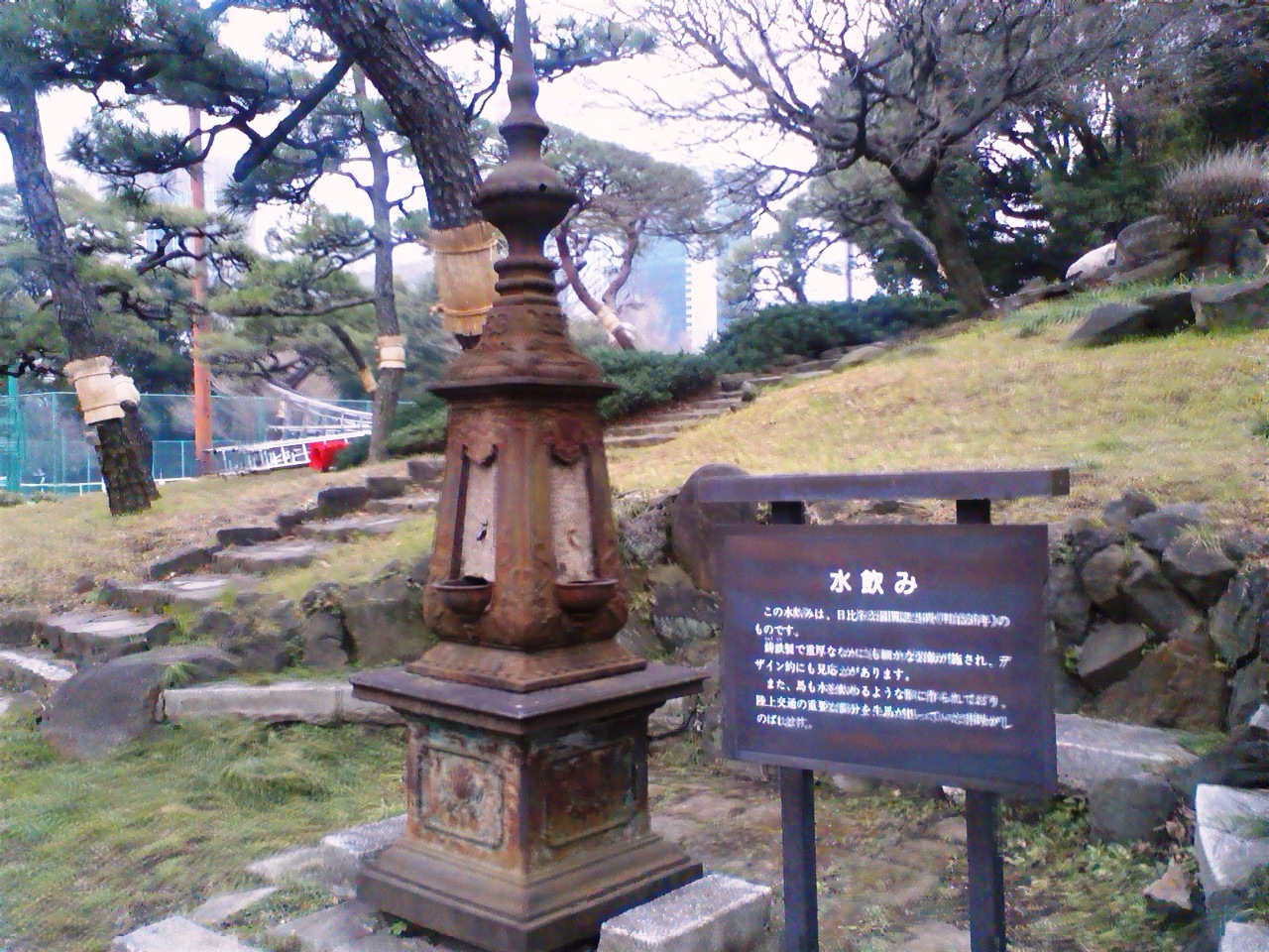 日比谷公園の晴海通り側、三笠山の下にある、洒落た水飲み場。