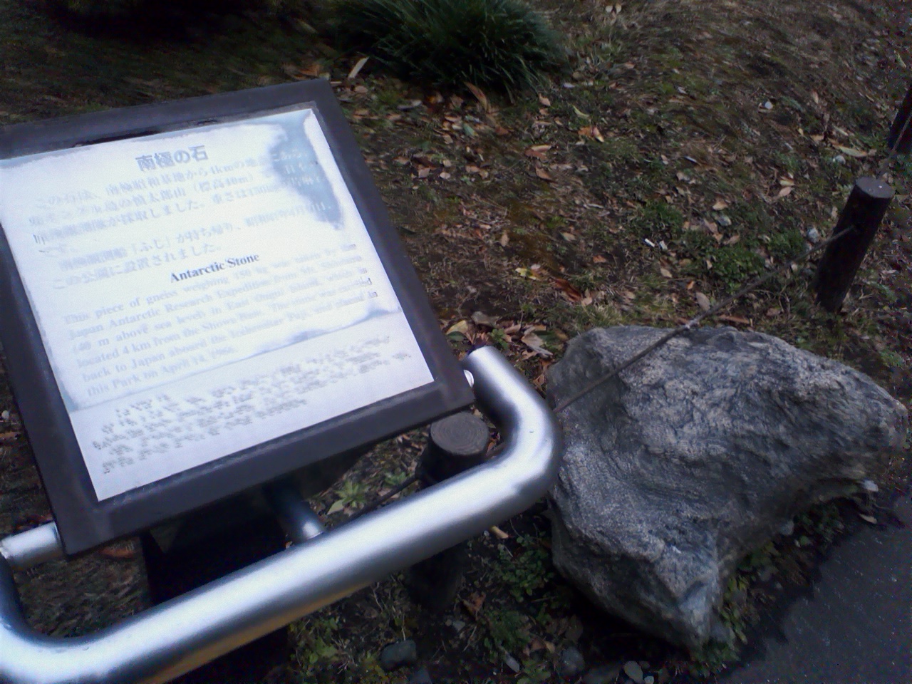 解説版がなければ単なる庭石と思って通り過ごしてしまいますが、この石が、南極の石との事です。