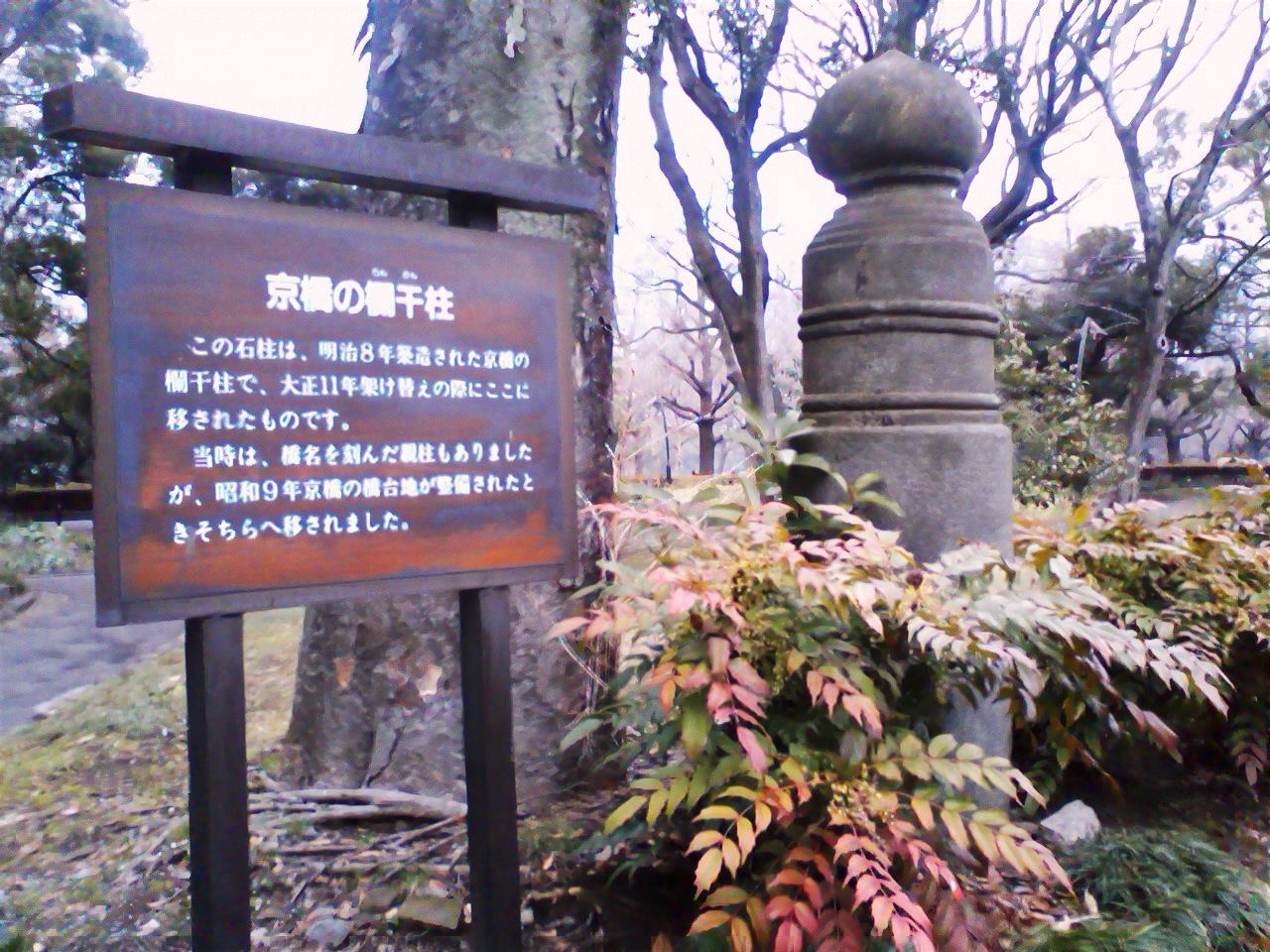 明治8年に作られた京橋の欄干柱で、大正11年の京橋の架け替えの際に、日比谷公園内にうつされたものとの事です。- 旅行時期