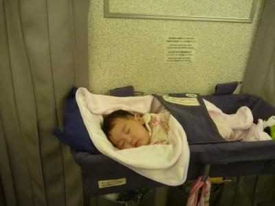 離陸時は母乳を飲ませて耳抜き。その勢いでぐっすり寝てしまいました。心地...