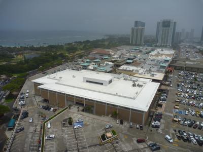 アラモアナショッピングセンターの全景です。ホテルからの専用通路は、手前...