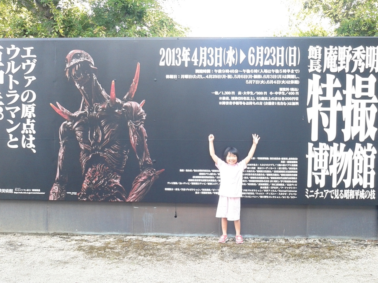 この日は、特撮博物展という催しがされていました。ウルトラマンやゴジラなどの特撮実写番組でよく目にするような風景に自分が入り込んで写真を撮影する事ができました。崩れたビルや東京タワーのミニチュアや山と山の間から身体を出し、いかにも自分がその街を支配しているかのように見せかれられたので楽しかった。