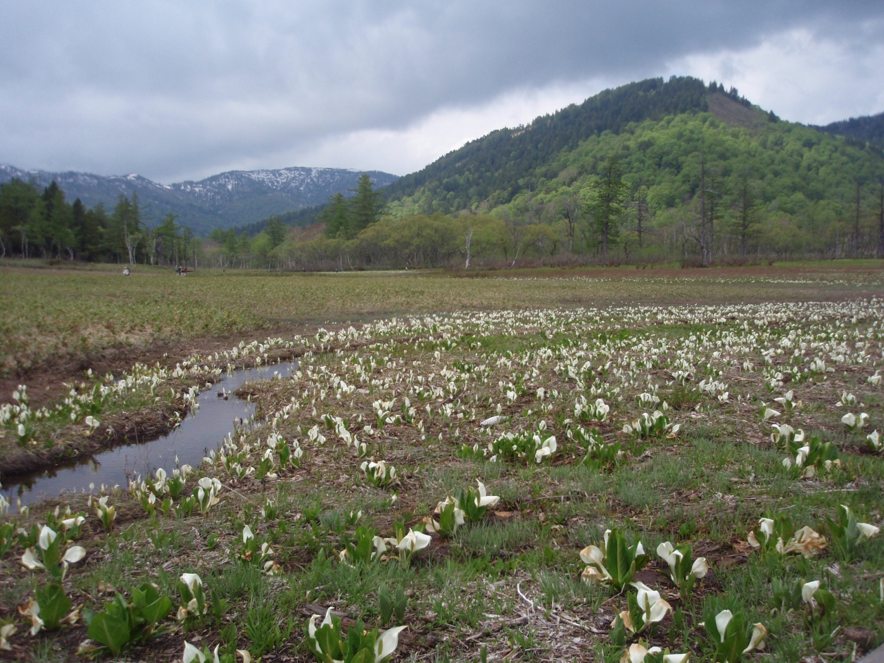 私の勘違いだったのは、尾瀬って湿地全部に水芭蕉が咲き誇っていると思っていこと。