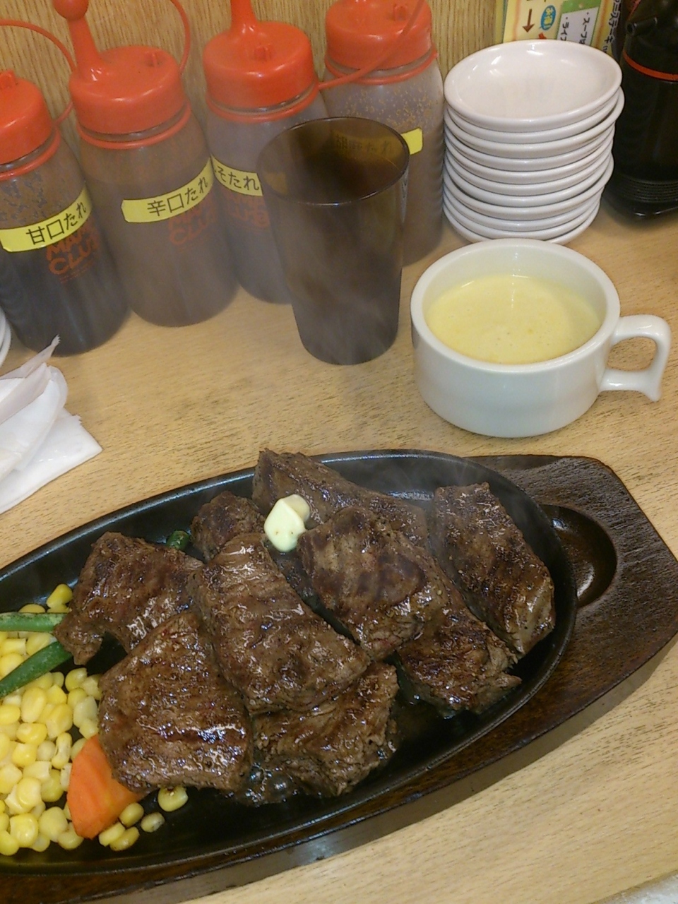 サービス丼という600円の丼ものもあれば、がっつりのステーキもあり、プロレスラー松永光弘のお店ということもあって、店内は男性の一人客が多いですかね~