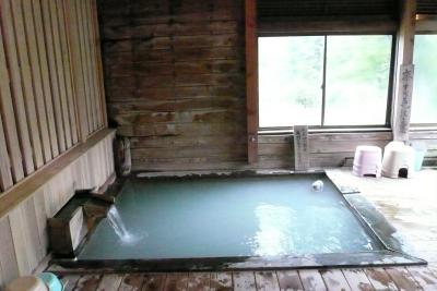 秘湯その1 ふけの湯 野天風呂すこしぬるめ、湯の花で滑りやすいです。