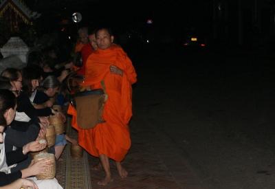 ここの名物は托鉢です。夜明けと共に多くの僧侶が行列で托鉢をし、観光客が...