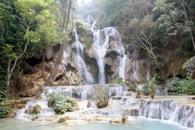町から1時間30分程のところにあるクアンシーの滝は乳白色の水の色がきれ...