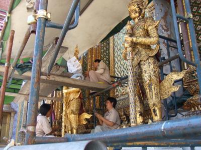 チャオプラヤー川の水上バスで王宮、寺院観光にいきました