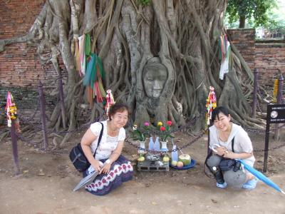 アユタヤの菩提樹の樹に取り込まれた仏頭 しゃがんで低い位置でなら写真を...