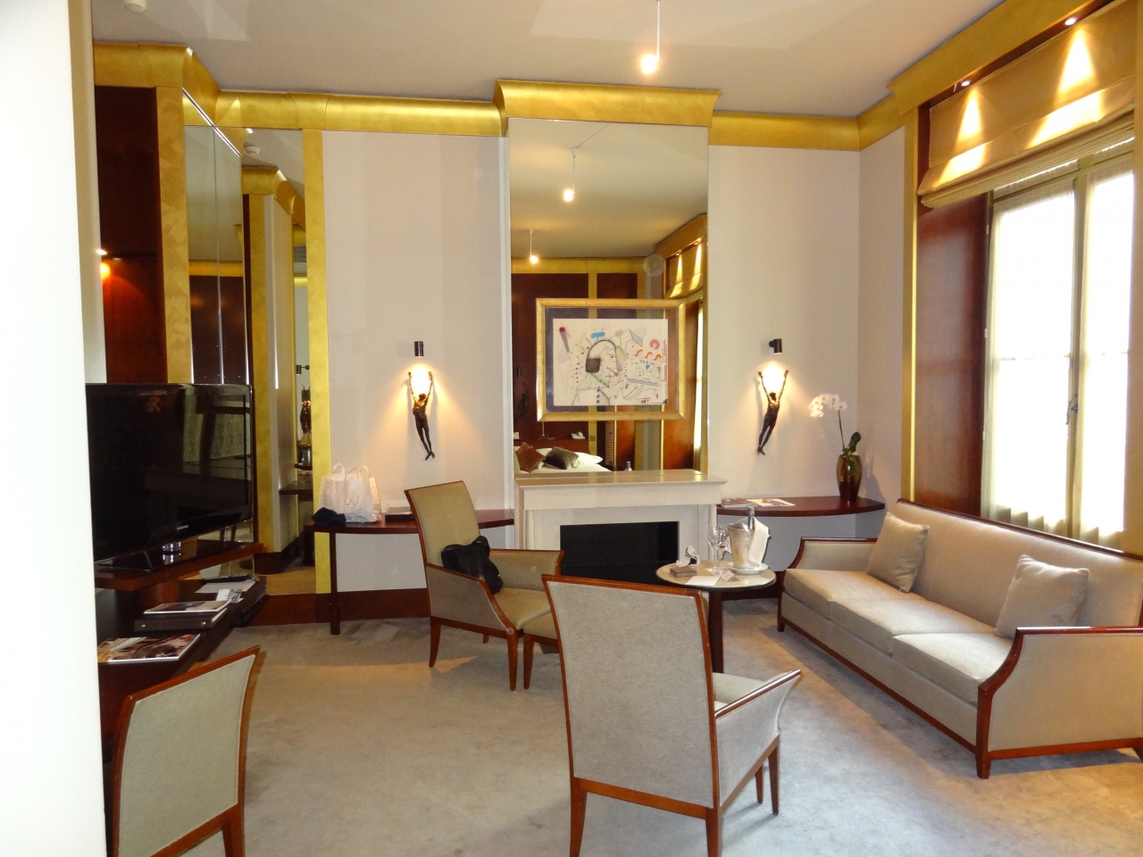 ホテルのHPによれば、部屋の広さはスイートで50m2未満です。今回はベッドルームとリビングが同じ部屋でした。デラックススイートのカテゴリーには寝室が別になっていますが、広さはパークハイアット東京のスイートの半分ほどです。天井は階層が低いほど高くて、今回は3階の部屋でしたが4mはある天井でとても開放感がありました。
