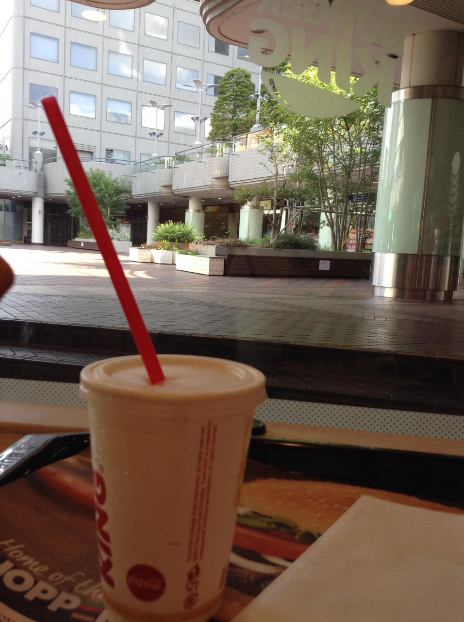 8時にバーガーキングがやっていたので入りました。コンセントがあり、便利です。