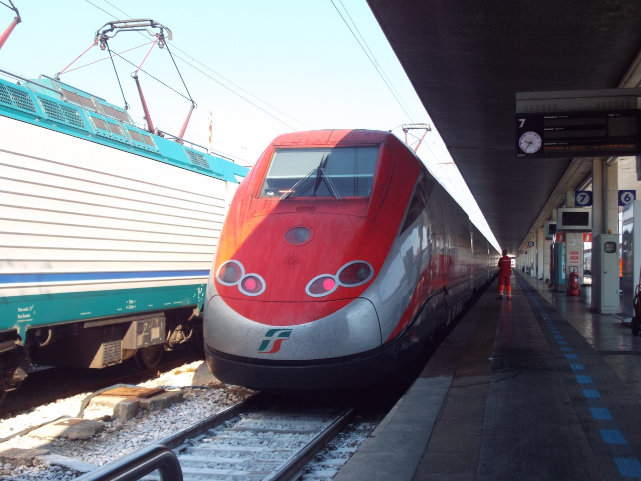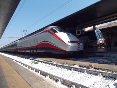 画期的なイタリア新幹線でまだできて3年くらいのフレッチャロッサです。ヴェネツィアからローマが3時間40分くらいで到着するのは、びっくりです。